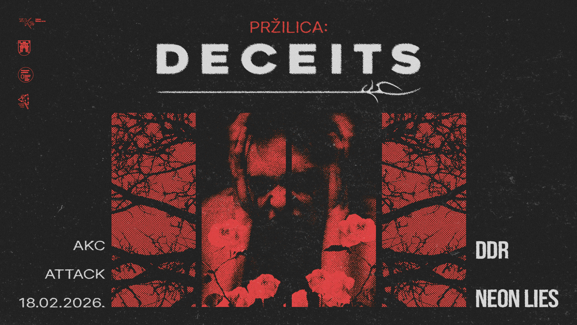 Ponosno predstavljamo prvu ovogodišnju Pržilicu - iz Los Angelesa dolaze DECEITS, a sukladno njihovom mračnom post punk zvuku večer otvaraju dobro nam znani zagrebački DDR i Neon Lies.