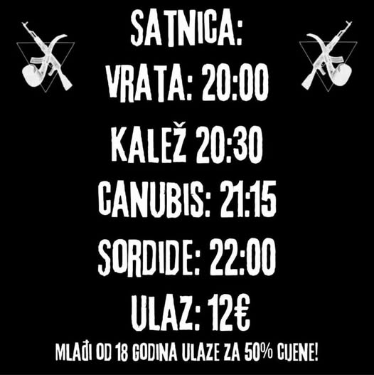 U početku bijaše ništavilo. Praznina koju polako punimo obilježena je arhaičnim znanjem koje ovih dana sve teže dolazi do naših umova. Kao da smo posve otupili na istinu i što ona uistinu jest. Zato u glazbi tražimo izlaz. Posebno u onoj najtežih rifova koji nas jednokratno odvedu u neku novu dimenziju gdje crnilo prevladava. Pronađimo sebe još jednom u tami Attacka jer ovog puta su s nama, black metal legije i sludge omladina: Sordide black metal, Francuska Canubis sludge doom, Zagreb Kalež black metal, Zagreb 10.2.2025. / 20:00 h / 8/12 € Ulaznice: https://bit.ly/3PxK9ba Iz Normandije, točnije iz grada Rouena, poznatog po iskrcavanju savezničkih snaga krajem Drugog svjetskog rata, dolaze Sordide. Trio izvodi black metal stare škole, izražavajući svoj prezirni i očajnički bijes na Molièreovom jeziku, pod motom: “Ni ime, ni zastava.” Nedvojbeno su ukorijenjeni u punk duhu i zvuku, reinterpretirajući naslijeđe bendova drugog vala kroz vlastitu razočaranu, ali ushićenu prizmu. Od osnutka 2013. bend je izdao četiri dobro prihvaćena albuma i split EP. U Zagreb dolaze prvi put na krilima svog posljednjeg albuma Ainsi finit le jour. Svirali su svugdje, od raznih podzemnih prostora pa sve do Roadburn festivala, a njihova važnost leži u stvaranju žestokog i hipnotičkog black metala, savršenog za vlažne i mračne klubove. 📌 https://sordide.bandcamp.com 📌 https://www.facebook.com/sordideband 📌 https://www.instagram.com/sordide_band Kalež, ali ne onaj iz kojega nas svećenik pokušava namamiti da krenemo vjerovati. Skroz novi trojac koji je marljivo kalio svoje oštrice zadnjih par godina, konačno izlazi iz podzemlja i donosi opskurnu, pomalo mističnu glazbu koja je otpor duhovnoj ravnodušnosti. Inspirirani su ezoterijom, osobnim metamorfozama, aktualan im je i dalje singl „Koplje kaosa” i ove zime su ušli u studio odraditi neizbježno. Snimiti zlo koje će činiti njihov prvi LP. 📌 https://kalezband.bandcamp.com 📌 https://instagram.com/kalez.metal 📌 https://www.youtube.com/@kalez2200 Canubis smo skužili nedavno jer radi se o mladoj srednjoškolskoj bandi koja ovih dana izvire iz devetog kruga pakla. Oni su peteročlani sastav mlade zagrebačke ekipe, stvaraju močvarne skladbe sa pikom na ljigave gitare i glasne bubnjeve. Utjecaje pronalaze među najrprljavijim predstavnicima NOLA scene, donoseći teške zvukove koji deru bubnjiće u publici. Pozdravimo početak nečeg što će biti veće od života! 📌 https://www.instagram.com/canubisofficial 📌 https://www.youtube.com/@canubisofficial Satnica: Ulaz: 20:00 Kalež: 20:30 Canubis: 21:30 Sordide: 22:30 _____ Crnilo booking https://linktr.ee/crnilo.booking