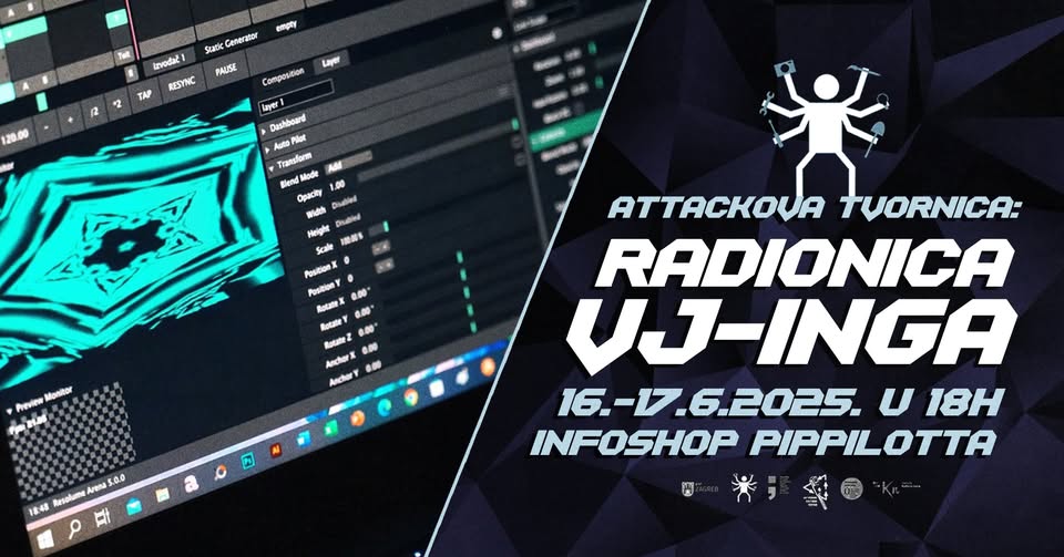 Attackova tvornica poziva sve zainteresirane na prijavu za besplatnu radionicu VJ-inga koja će se održati 16. i 17. lipnja od 18:00 sati u Infoshopu Pippilotta.