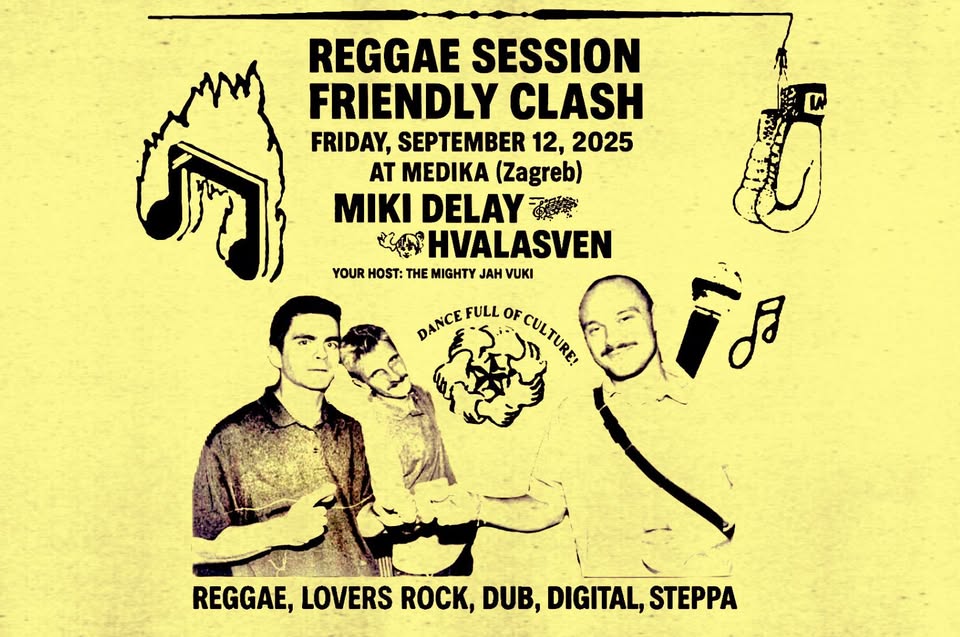 Dosta nam je šuma i spavanja po hemocima, vrijeme je da se reggae/dub plesnjaci vrate u Mediku! Tom prilikom dogovorili smo clash između dva zagrebačka dub influensera 𝗛𝘃𝗮𝗹𝗮 𝗦𝘃𝗲𝗻 𝘃𝘀. 𝗠𝗶𝗸𝗶 𝗗𝗲𝗹𝗮𝘆 - u 𝒇𝒓𝒊𝒆𝒏𝒅𝒍𝒚 𝒇𝒊𝒓𝒆 stilu.