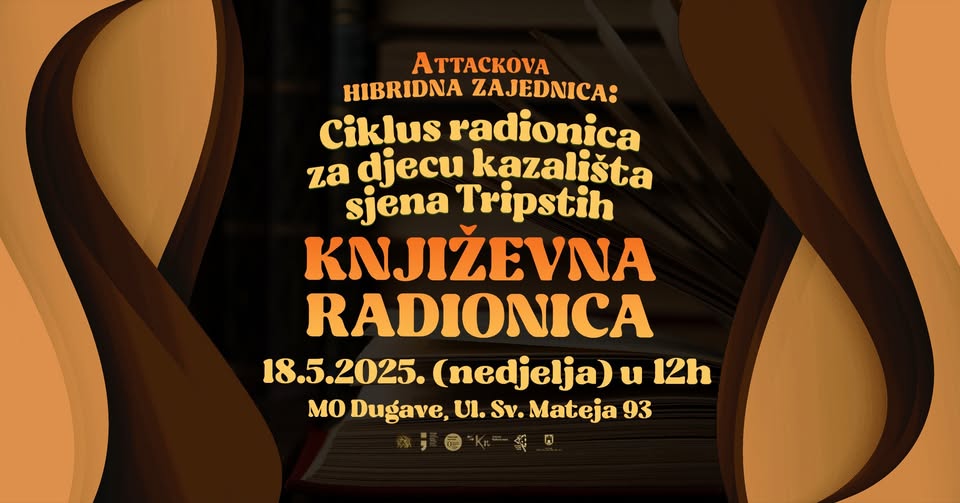Attackova hibridna zajednica: Ciklus radionica za djecu – kazališta sjena Tristih: Književna radionica Nedjelja, 18. 5. 2025. Od 12:00 do 13:30 sati Mjesni odbor Dugave, Ulica Sv. Mateja 93 Attackova hibridna zajednica poziva vas na prijavu za književnu radionicu za djecu. Radionica će se održati 18.svibnja 2025. u 12.00 do 13.30 sati u prostorijama Mjesnog odbora Dugave, Ulica Sv. Mateja 93. Radionica je namijenjena djeci uzrasta 7 -12 godina. Sudjelovanje na radionici je besplatno, no broj polaznika/ca je ograničen. Za sudjelovanje je zato potrebna prijava - ispunjavanje upitnika na sljedećoj poveznici: https://shorturl.at/JRNsi Prijave primamo do 16.05. u 17.00 sati Potvrdu sudjelovanja dobiti ćete nakon isteka roka za prijave. Radionica obuhvaća niz literarnih igara na kojima će se igrati riječima, osmišljavati priče i izmišljati likove. Kroz igru pisanje zajedničke priče jača se tolerancija, prihvaćanje drugih kao i uočavanje različitih perspektiva. Kroz igru u koju se iz kutije se izvlači fotografije/crtež, polaznici radionice osmišljavaju svog lika, dajući mu osobine i stvaraju priču. Stavljajući se u poziciju drugih uči se o sebi, drugima, društvu koje nas okružuje. Na radionici će se obrađivati i tema emocija pisanjem priče iz pozicije jedne emocije. Samom pričom nastojat će se doći do pozitivnih uloga emocija koje obično nisu ugodne. Nakon čitanja nastalih priča razgovarat će se o emocijama i njihovom utjecaju na odlučivanje. Voditeljice radionice su članice kazališta sjena Tripstih: Ives Buljan Gladović i Petra Bokić Pokrovac Iz kazališta sjena Ikako-Nikako, u listopadu 2013, godine, nastala je kazališna skupina Trpistih. Tripstih čine: Ives Buljan Gladović (Ikako-Nikako, Skaska, Zvuk sjene), Petra Bokić ( Ikako-Nikako, Skaska, Zvuk sjene). Tripstih se bavi istraživanjem svjetla i sjene kroz: grafoskopske projekcije, kazalište sjena za djecu i odrasle, radionice. Kazalište Tripstih iza sebe ima niz projekata, neki od njih su likovno oblikovanje i scenografija za monooperu u režiji Marija Kovača Ljuski glas, radionice kazališta sjena za odgojitelje i dramske pedagoge, Laboratorij zabave, scenografija i likovno oblikovanje za antički festival Burnumske ide u Ivoševcima. __________________ Program Attackova hibridna zajednica nastao je kao rezultat suradnje AKC - a, s pojedinim članovima zajednice u Dugavama, koji se kroz godine trude oživjeti društvene i kulturne programe u tom naselju. Opći cilj projekta je omogućiti kulturne sadržaje u dijelovima grada koji su do sada isključeni iz trendova realizacije kulturnih dešavanja. Projekt se provodi kroz program Kultura u zajednici, kojeg financira Grad Zagreb, u partnerstvu s MO Dugave, Teatrom Puna kuća, Centrom za primjenu integriranog znanja ANZIP