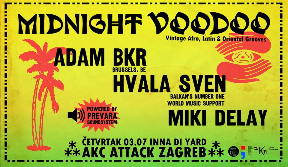 Adam Baker, DJ and vinyl collector from Brussels, is coming to Zagreb! Founder of the collective Midnight Voodoo, known for sets that fuse Zouk, Cumbia, Bollywood soundtracks, Afro-funk and psychedelic gems from the 70s – it sounds modern and ancient all at once!