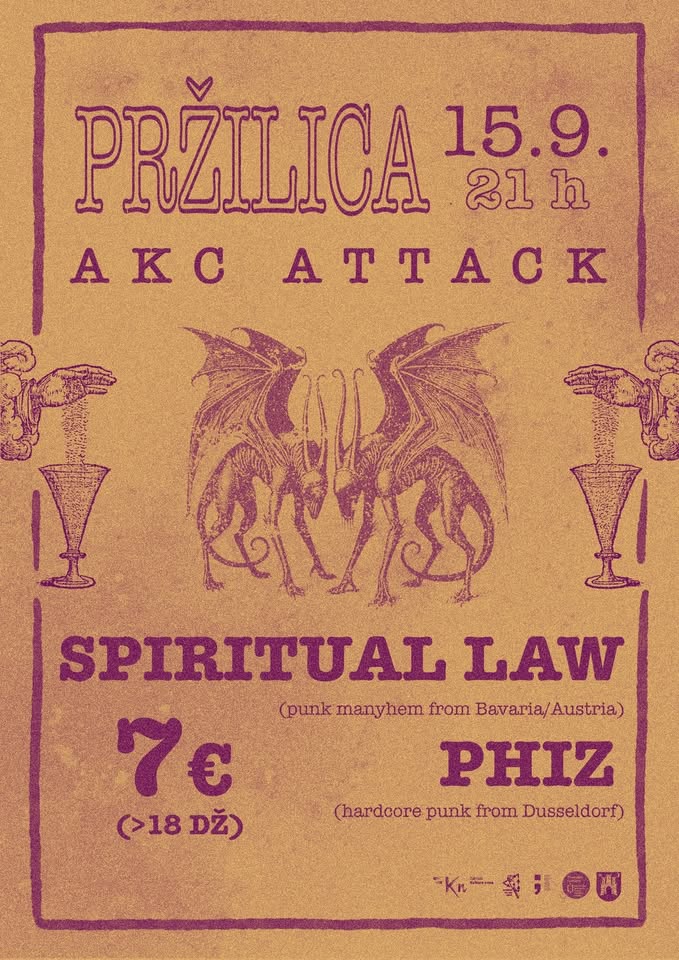 Započinjemo tjedan i novu sezonu pankčine u Attacku i krećemo onako kako treba – brzo, glasno i bez pardona. Nakon prošlogodišnjeg prženja, vraća nam se Spitirual Law, a Phiz gledamo prvi puta u našem klubu.