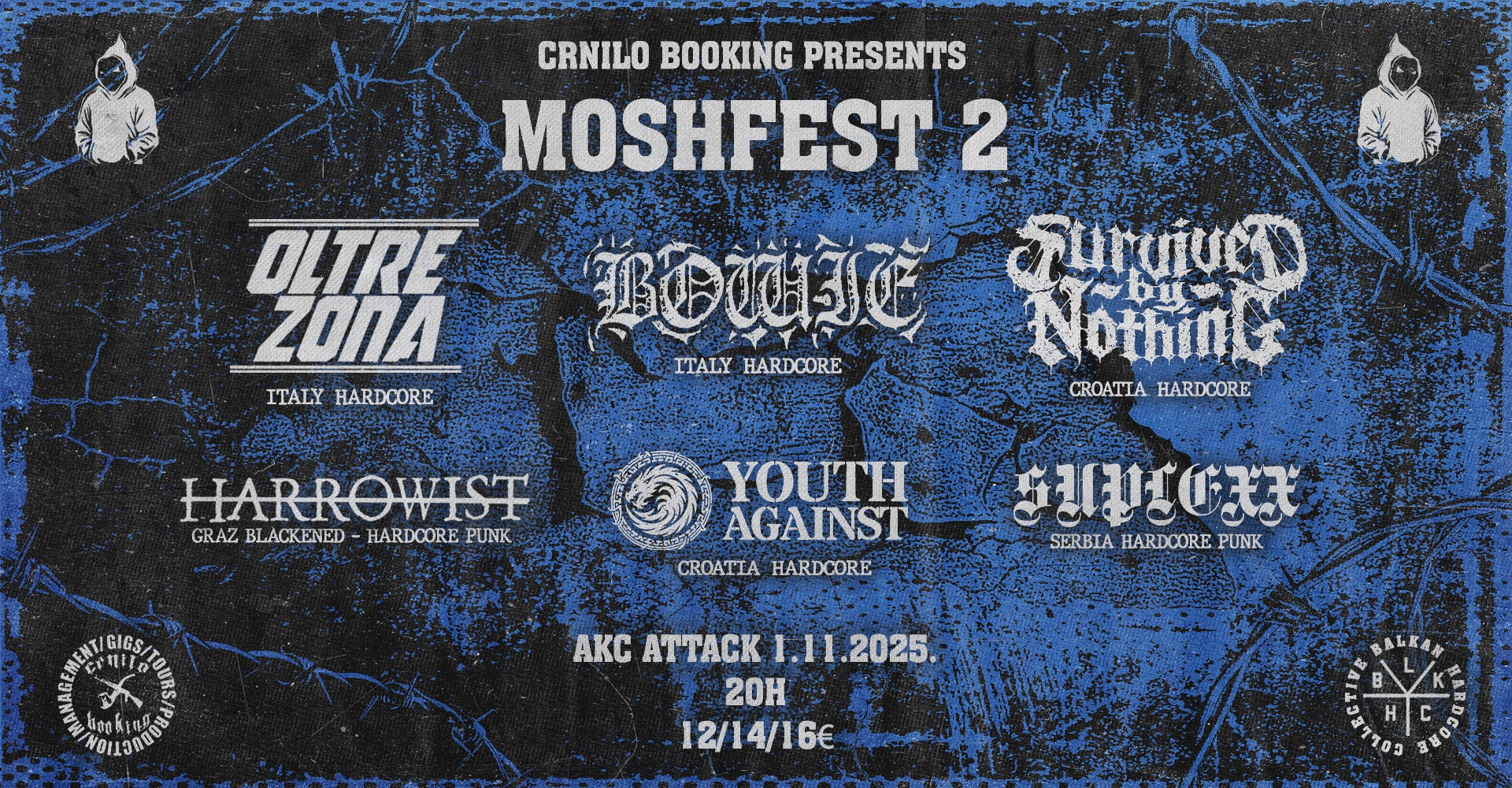 Ako si bio prošli put, znaš što te čeka. Ako nisi, dobrodošao u stvarnost bez ograde, gdje su pogo, urlik i podrška jedini jezik koji se govori. Ove godine zajedničkim snagama doprinos razvoju suvremenog mosh zvuka donose Crnilo, Balkan Hardcore i drugi pojedinci. Prije ulaska pažljivo razmisli o vlastitim granicama. O rizicima, modricama i mogućim gubicima glasa konzultiraj se s najbližim hardcore entuzijastom.