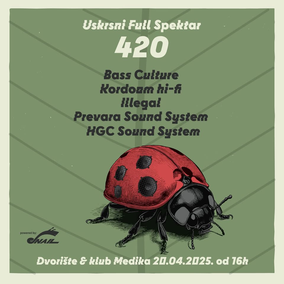 Naime, 20. travnja u Medici vas očekuje probrano društvo koje je uvijek spremno za beskompromisnu borbu protiv nepravde. Nakon duljeg vremena u Medici imamo priliku slušati naš najstariji sound system Bass Culture, a pratit će ih aktivna ekipa iz Kordoom Hi Fi-a. Družina iz Prevare inspirirana ovom svetom biljkom prevariti će vas poput najgoreg dilera iz kvarta. HGC sound će se pobrinuti da ovaj 420 događaj dobije na žestini, a cijeli party organizira Illegal koji ima za cilj promovirati slobodan i legalan život.