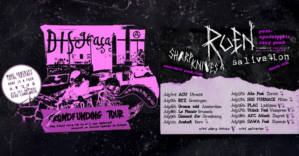 Prije nego odemo na more i zatvorimo vrata Attacka do rujna, ostalo nam je za ispuniti još jedno dobro djelo. Pozivamo vas da nam se pridružite na benefit gigu za lisabonski autonomni prostor Disgraca u petak 18. srpnja 2025. od 20.30 u klubu Attack!