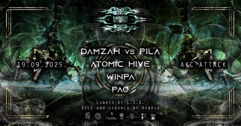 Za otvaranje nove indoor psytrance sezone, Hybrid predstavlja party u AKC Attacku. Nakon svih gatheringa, festivala i outdoor partija, vrijeme nam nalaže da se premjestimo u četiri zida i nastavimo s onim što najviše volimo. Zbog nezasitne publike koja je željna partija i dobre zajebancije, primorani smo organizirati još jedan indoor party. Povlačimo se u mračan prostor dobro nam poznate AKC Medike uz (ne)adekvatnu dj ekipu. Ovu psihodeličnu večer začinit će svima dobro znani domaći lineup, ali zato ništa manje kvalitetan.