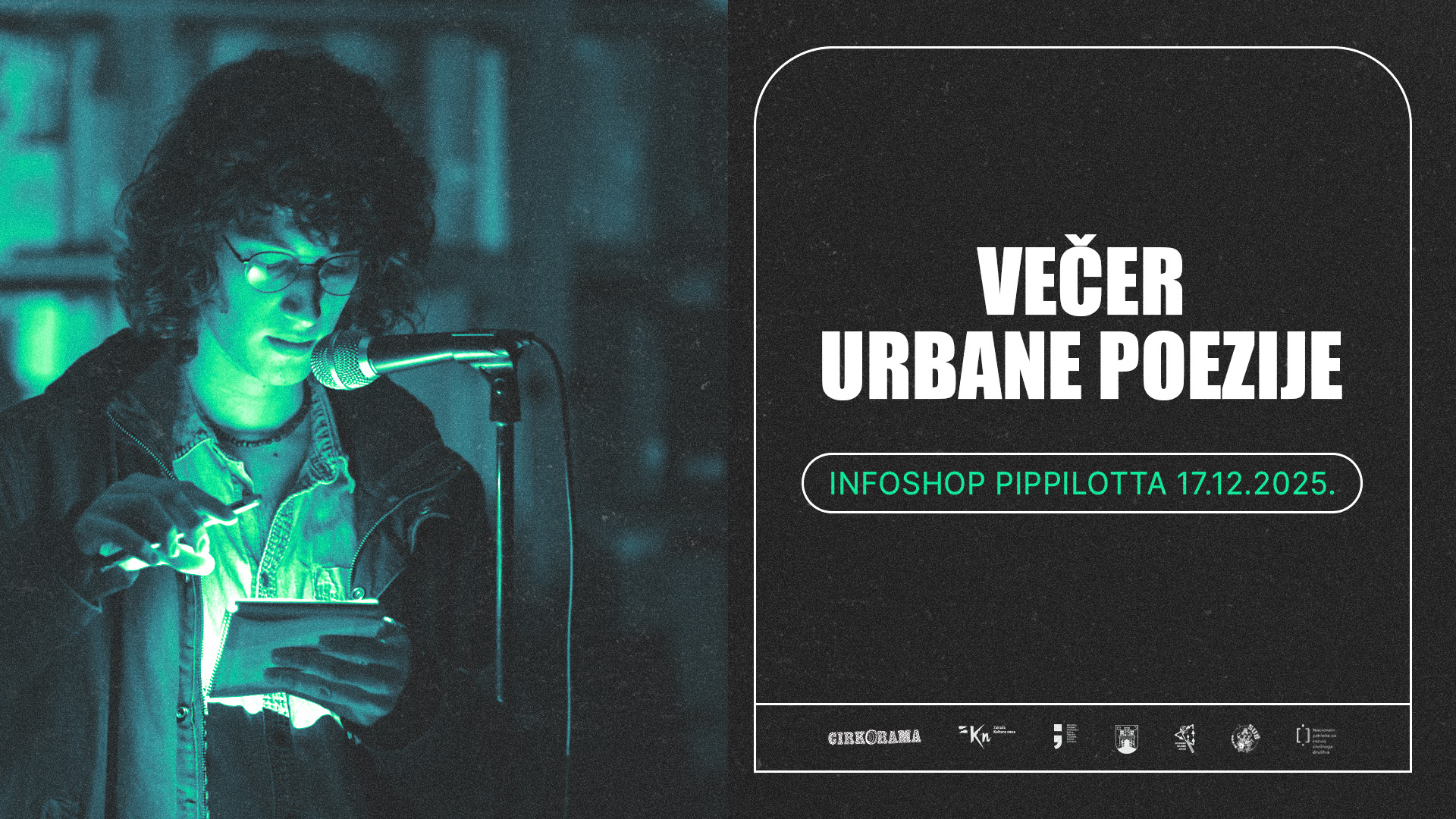 Posljednja Večer urbane poezije u 2025. održat će se u srijedu 17.12.2025. u Infoshopu Pippilotta. Ponesite svoju cugu i nazdravimo zajedno kraju ove i početku nove godine!